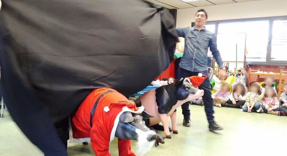 El padre de Diego H acudió al colegio para hacer una degustación de Jamón y productos del cerdo: en ella los niños pudieron entender cómo era el trabajo del padre de Diego y además nos enseñó dos figuras del animal muy realistas. ¡Algunos niños lo confundieron con un toro! así que ,aunque fue breve la visita, aprendimos mucho.